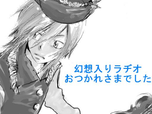 今日は朝から気分がよかったので猫ともふもふしてきました。 そんな話はさておき・・・ 昨日、またもや幻想入りラジオにて エスパダさんに代わりサブパーソナリティをしてきました。 エスパダさんに代わりサブパーソナリティをしてきました。 (大事なことなので2回言いました。) まぁ先週もやりましたがwそれは置いといて 今週はなんと幻想入りを知る方なら誰もが知ってるであろう あの春雨さんがゲストでした。 ええ、13人目の方です。 JOJOとかルナ雨で有名なあの方です。 なんでも酢飯さん曰く絵茶でばったり会ったので誘ってみたとか。 それでOKをもらいゲストとして招かれたとか。 ( ^ω^)・・・・。 なんていうかみんな行動力あるなぁと思いました。 ・・・幻想入りしてるくらいだしこのくらい当たり前かな、かな! そんなわけでラジオのお話 ↓ 開始10分前からIRCは80人オーバー 開始してすぐに100人を超えました。 ラジオ視聴者自体は150人近くいたそうです。 ちなみに4回目ラジオは 最大視聴者数ぎりぎり100人くらい 春雨さん効果すげぇwwwwwww と、草を生やすくらいの勢いでした。 いつもどおりの動画の紹介をしつつ 10時前頃に春雨さんをスカイプへ招待し そこからゲストトーク開始。 内容に関しては本人の許可を得次第 大雑把にですが後程書き足しておきます。 やっぱりえすぱださんのように上手くできずorz 春雨さんにも迷惑をかけてしまったのではないかと心配です。 それでも春雨さんと酢飯さんが手伝ってくださいまして トラブルもなくゲストトークを乗り切りました。 後半も勢いを無くす事なく進行していきましたが 今回もラジオの時間を1時間延長してしまいましたorz こればかりは場数を踏んで調整していくしかないでしょうから 酢飯さんファイト!トラブル起こるな!俺自重! うん、こんな感じで頑張りましょう(´ω`) そんなわけでして 俺も酢飯さんも春雨さんも見てくださった方も みんなとても楽しめたんじゃないかなと思います。 俺自身も毎回緊張していますがとても楽しんでおります。 調子乗ってんじゃねーよRO厨とか思われてないか心配なくらいorz それでも楽しんでもらえる方がいるのでしたら、またお手伝いしたいと思います。 その時は酢飯さんゲストさん視聴者の皆様、またよろしくお願いします。 オマケ動画にも使用したルナサを ラヂオの題字に送っておきました。 こちらは字を入れ替えただけのお疲れ様Verです。 |